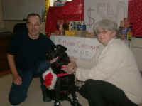 hat and a very friendly Gorden Setter who got very friendly with him. The best behaved cats attended and must have known there were presents riding on the line as they posed and sat proper - even my Rocket showed up to meet the Big Guy! Pets of all sizes, the big to the very tiny - they all sat and told him what they wished for. All with hopes for the best Christmas ever and in such loving homes I am sure they will have it. |